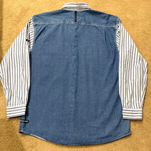Vintage Bugle Boy Denim Striped Shirt Mens Large Long Sleeves 100% Cotton