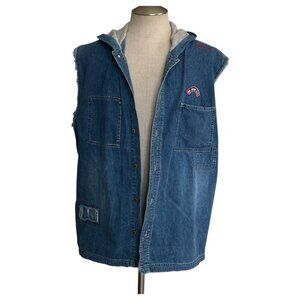 Vintage Bugle Boy Denim jean Hoodie Vest Mens Size XL Button Front Blue Cotton
