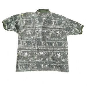 Vintage Bugle Boy Hawaiian Print Polo — Light Green & Tan Floral / 90s / XXL