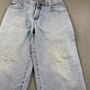 Vintage Bugle Boy Jeans Mens 33x29.5 Blue Baggy Straight Carpenter Gold Crest 7M