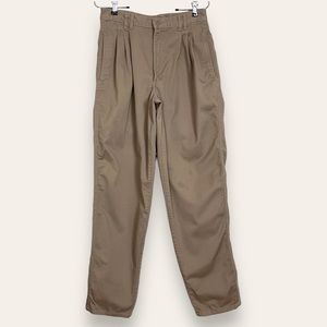 Vintage Bugle Boy men's pants with pleated waist and tapered leg. Khaki colored.