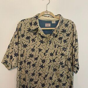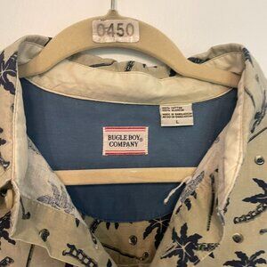 Vintage Bugle Boy Mens L Button Down Shirt Cotton Palm Trees Golf Clubs Balls