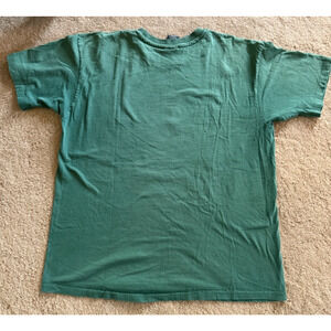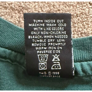This Vintage Bugs Bunny Tee is a men's size XL shirt from 1998, featuring a classic graphic of Bugs Bunny from Warner Bros' Looney Tunes series. Made of cotton with a single stitch construction, this green tee has a crew neck and short sleeves, giving it a vintage look. The shirt is 46 inches in chest length and 27 1/2 inches in overall length, making it a regular fit with a solid pattern. Perfect for fans of Bugs Bunny and vintage Looney Tunes merchandise, this original tee is a nostalgic piece of clothing for collectors and enthusiasts.