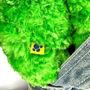 Vintage Build A Bear Green Frog Plushie Stuffed Animal Jean Overalls 18” RETIRED