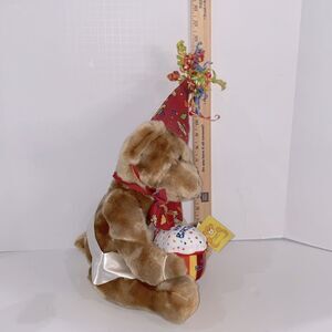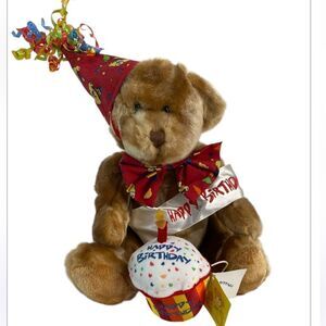 Vintage Build A Bear Happy Birthday Bear Wearing Party Hat Happy Birthday Sash & Bow Tie Holding A Cupcake