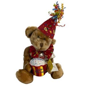 Vintage Build A Bear Happy Birthday Bear Wearing Party Hat Holding A Cupcake
