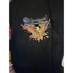The vest also includes a stylish logo accent and graphic print of the Built to Ride design. This regular fit vest is size XL and was made in Mexico. Whether you're a collector or just starting your biker journey, this vest is a must-have.