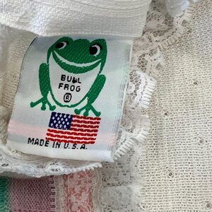 Charming vintage Bull Frog girls lace knit sweater top in size 2T. Made of white acrylic, this piece adds a classic touch to any outfit. Proudly made in the USA.