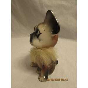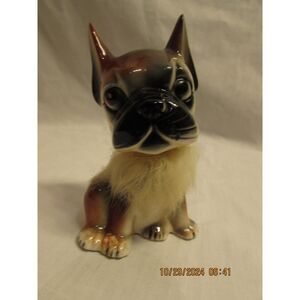 Vintage Bulldog figurine statue furry neck Japan brown black dog puppy