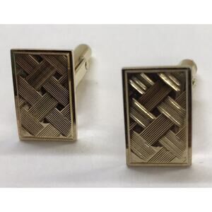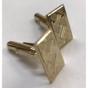 Vintage Bullet Back Cufflinks Goldtone Rectangle Etched 3/8 x 5/8" Pair