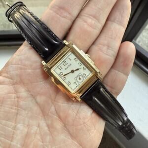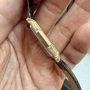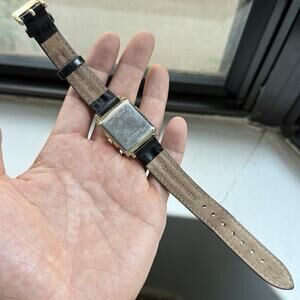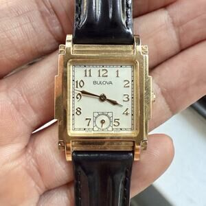 Vintage Bulova Gold Tone Tank Watch Black Leather Art Deco Quartz NEW BATTERY