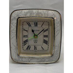 This vintage Bulova alarm clock, crafted in Japan, exudes timeless elegance. Its Roman numeral face combines with gold accents to offer a classic aesthetic. The compact 3.5-inch size makes it ideal for any space, while the quartz movement ensures reliable timekeeping. A nostalgic piece that blends functionality with an enduring vintage charm.