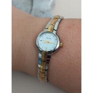 Vintage Bulova Women Mother of Pearl Bracelet Watch 98T73 Working 7.5in