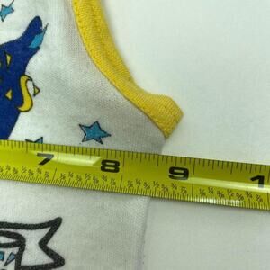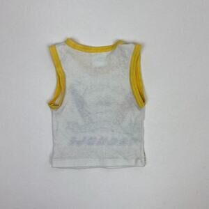 Vintage Bumpin Here Comes Trouble Tank. Baby toddler boy size 12 months. Love this one! White and yellow sleeveless top with troublemaker design. See photos for measurements. It has good stretch; I stuffed my two year old in it a few times!