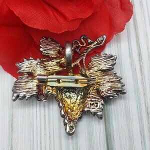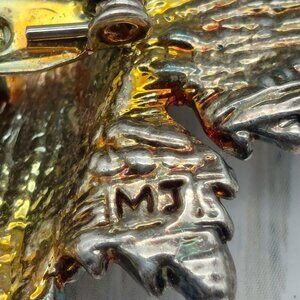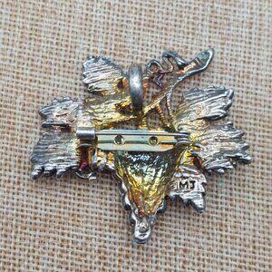 Vintage Bunch of Grapes on Vine Leaves Two Tone Brooch Signed MJ 2" X 2"