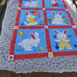 Vintage Bunny Design Quilt For Baby Lace Trim 43x34in Multicolor