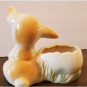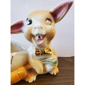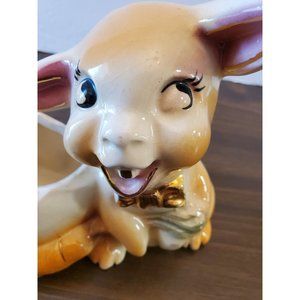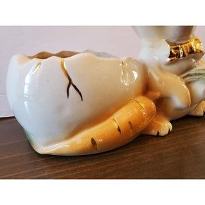Vintage Bunny Dish Ceramic Rabbit Egg Carrot Candy Planter Gold 6" x 3" Kitch