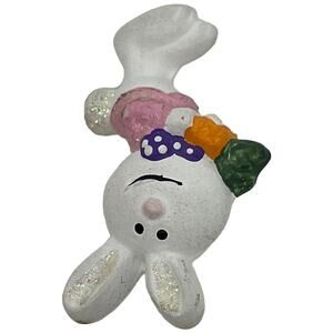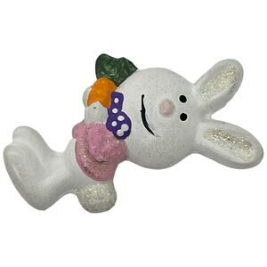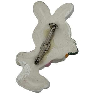 This charming vintage Easter bunny pin adds a touch of whimsy to any springtime ensemble. In good condition, it measures approximately 1.5 inches in length and 1.25 inches in width. With its playful design, this pin is perfect for celebrating Easter or adding a fun accessory to your collection. Its timeless appeal makes it an ideal piece for both vintage pin enthusiasts and those who enjoy holiday-themed jewelry.