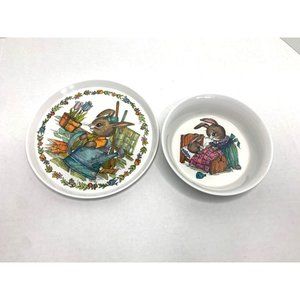 Vintage Bunny Rabbit 2 pc Plate Bowl Set Silite 3101