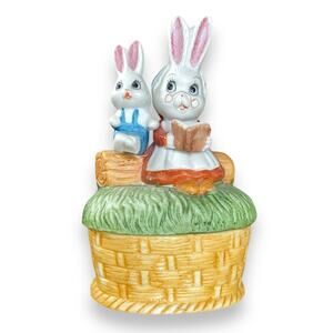 Vintage Bunny Rabbit Trinket Jar Figurine 5” Porcelain Ceramic Lund’s Lites 90s