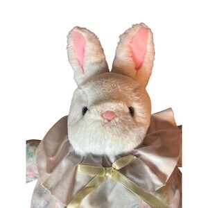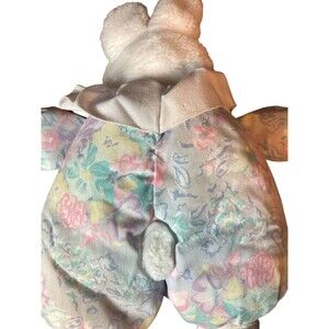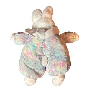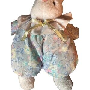Vintage Bunny Rabbit White Plush Stuffed Animal Flower Sleeper Puffy Easter Gift