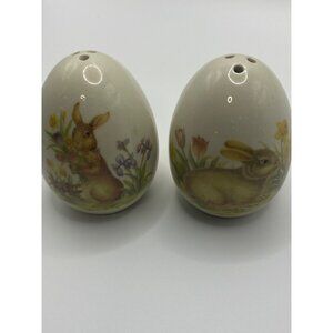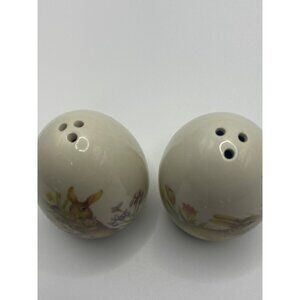 Vintage Bunny-Themed Ceramic Salt & Pepper Shakers With Floral Design Easter Dec