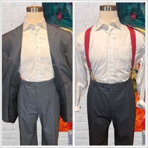 Vintage Burberry 44L 40x31 Gray 2 Piece Suit with Red Suspenders Quality