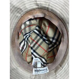 Vintage Burberry’s Men’s Tan Bucket Hat Beige Cotton Classic Check Lining Size 7 3/8