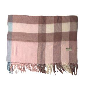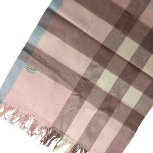 Vintage Burberry Classic Light Pink Blue Brown 100% Cashmere Scarves