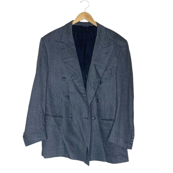 Vintage Burberry Gray 100% Pure New Wool Blazer. No size tag, please see measurements. Fits like a large