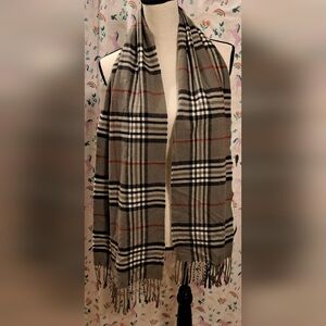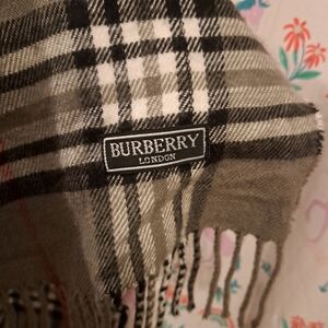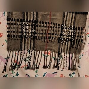 Vintage Burberry Grey & Black Nova Check Cashmere Neutral Warm Winter Scarf
