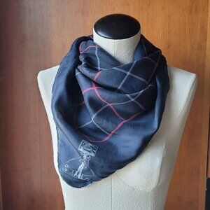 Vintage Burberry Large Square Navy Plaid Silk Scarf House Check Pattern