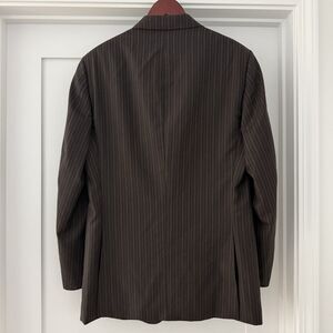 Vintage Burberry London Blazer 42R Brown 100% Wool Sports Coat Suit Pinstripe. Made in USA. Guessing 90s vintage from the Union tag and the style. Beautiful chocolate brown 100% wool garbardine. Excellent condition.