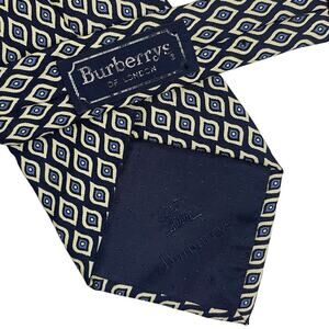 Vintage Burberry London Designer Luxury Pure Silk Necktie Blue White