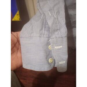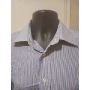 Vintage Burberry Dress Button Shirt Mens 16 35 (XL) Blue Striped USA Made