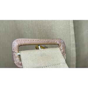 Condition – Good condition for vintage age, it was just dry cleaned. The leather buckle has some darkening/wear (primarily on the back), there is a small area of staining at the bottom by the trim and there are a few areas that look lighter in certain light (it is from the sheen being rubbed more in some areas). The buttons appear loose, but it is the design. You have to be looking for these areas of wear to see them. Coat was authenticated by Authentic Detective.