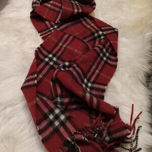 The 1980"s Burberry Nova Check scarf is timeless as is the 100% Scottish cashmere that it is made from. This red Nova Check is a bright, colorful take on the traditional. There is one callout due to couple moth holes. EUC and ready to keep you warm and cozy. MSRP $595