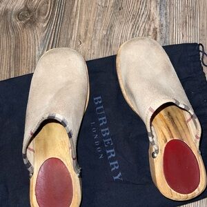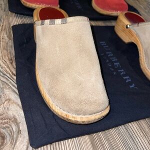 Vintage Burberry Red & Tan Clogs Classic 2 Pairs With Burberry Cloth Bags size 6