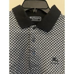 Vintage Burberry Short Sleeve Polo Shirt Houndstooth Chevron Mens Medium Cotton