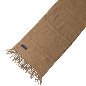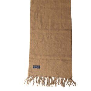 Vintage Burberry Solid Camel Tan Embroidered Logo 100% Cashmere Scarf Scarves