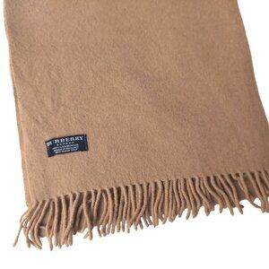 Vintage Burberry Solid Tan Embroidered Prorsum Logo 100% Lambs Wool Scarves