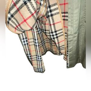 Beautiful green mens vintage Burberry Trench coat with wool check liner, silk material lines the sleeves, it’s absolutely beautiful. Bought it for my husband from original owner and it’s just a little too big. Size 44 men’s. Stunning jacket, in very good vintage condition no rips no tears has been extremely well loved.