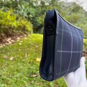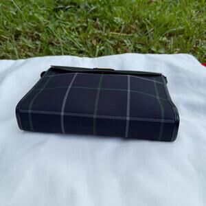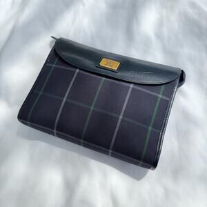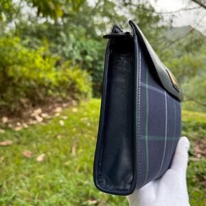 Vintage Burberrys Blue Plaid Clutch Canvas Leather Trim Authentic