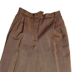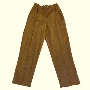 Vintage Burberry’s Brown Pants, Wool high waist Pleated Trousers Size 4 Petite