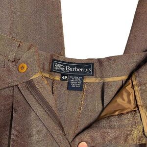 Vintage Burberry’s Virgin Wool Rust colored high waisted Pleated Trousers. Beautifully tailored . In great condition - there are 2 small holes as pictured on toward bottom of leg the other on front of thigh. Size says 4P but they are not very generous. Made in USA