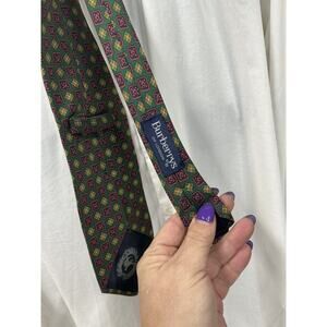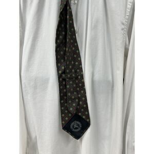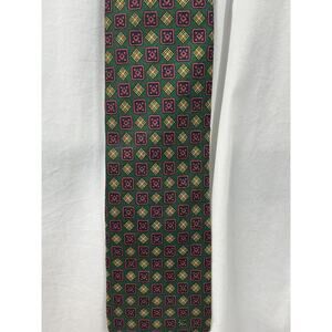 Vintage Burberrys Of London Tie Silk Green Red Gold Geometric Print