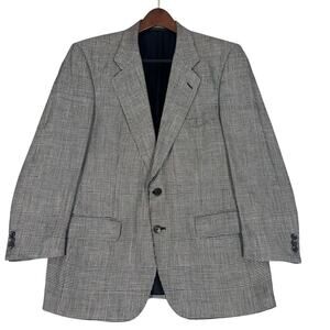 Vintage Burberry’s Silk Blazer 42R Sport Coat Houndstooth Windowpane Black White