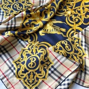 Vintage Burberrys Silk Scarf Nova Check + Baroque Print Made in Italy 34” Square
