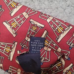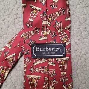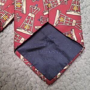 Vintage Burberrys Tie Mens Silk Red Lantern Print Hand Sewn USA 90s Designer