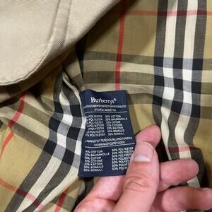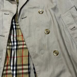 Authentic vintage Burberrys trench coat, made in England, features the iconic Nova Check lining. Classic 1980s–90s style. In good vintage condition with visible staining (see photos). Sold as-is!